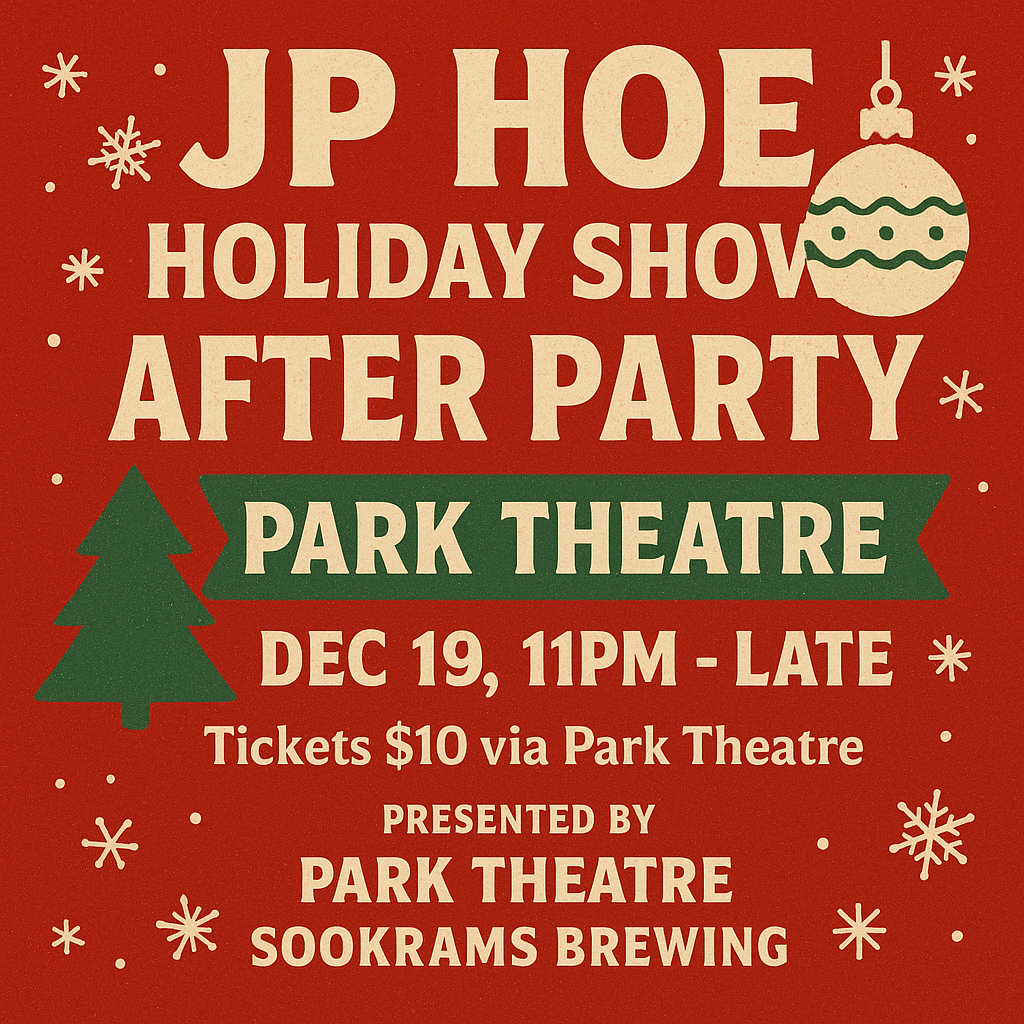 If you know, you know. Best way to wrap up the holiday show, is for another massive set of JP originals + some the band’s favourite covers, and the home away from home Park Theatre. ONLY $10. Yeah, inflation proof. Grab your tickets here! Presented by Sookrams Brewery and the Park Theatre.