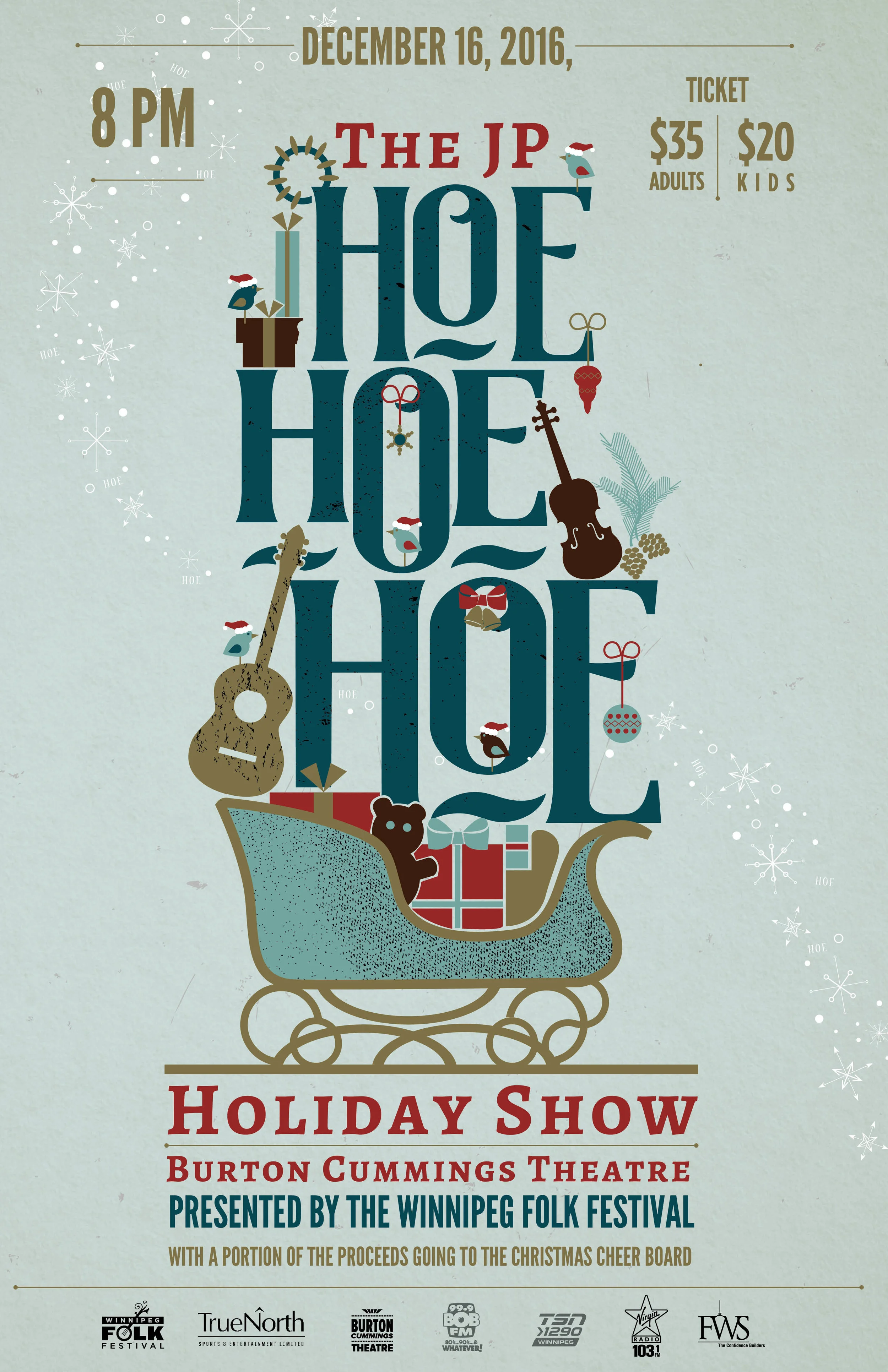 Ten years ago a tradition was started in Winnipeg. A night to celebrate another year in the books, indulging in the pleasure of the holidays. The JP Hoe Hoe Hoe Holiday Show resides at the Burton Cummings Theatre, starring a band of Winnipeg’s finest musicians and a catalogue of music you won’t forget. With trimmings of campy decorations, timeless moments from pop culture, and at the heart of it a winter concert. Every moment is designed to capture all the good feelings the time of year has to offer. No stress, no mess, this concert is a night you can share with anybody and everybody.